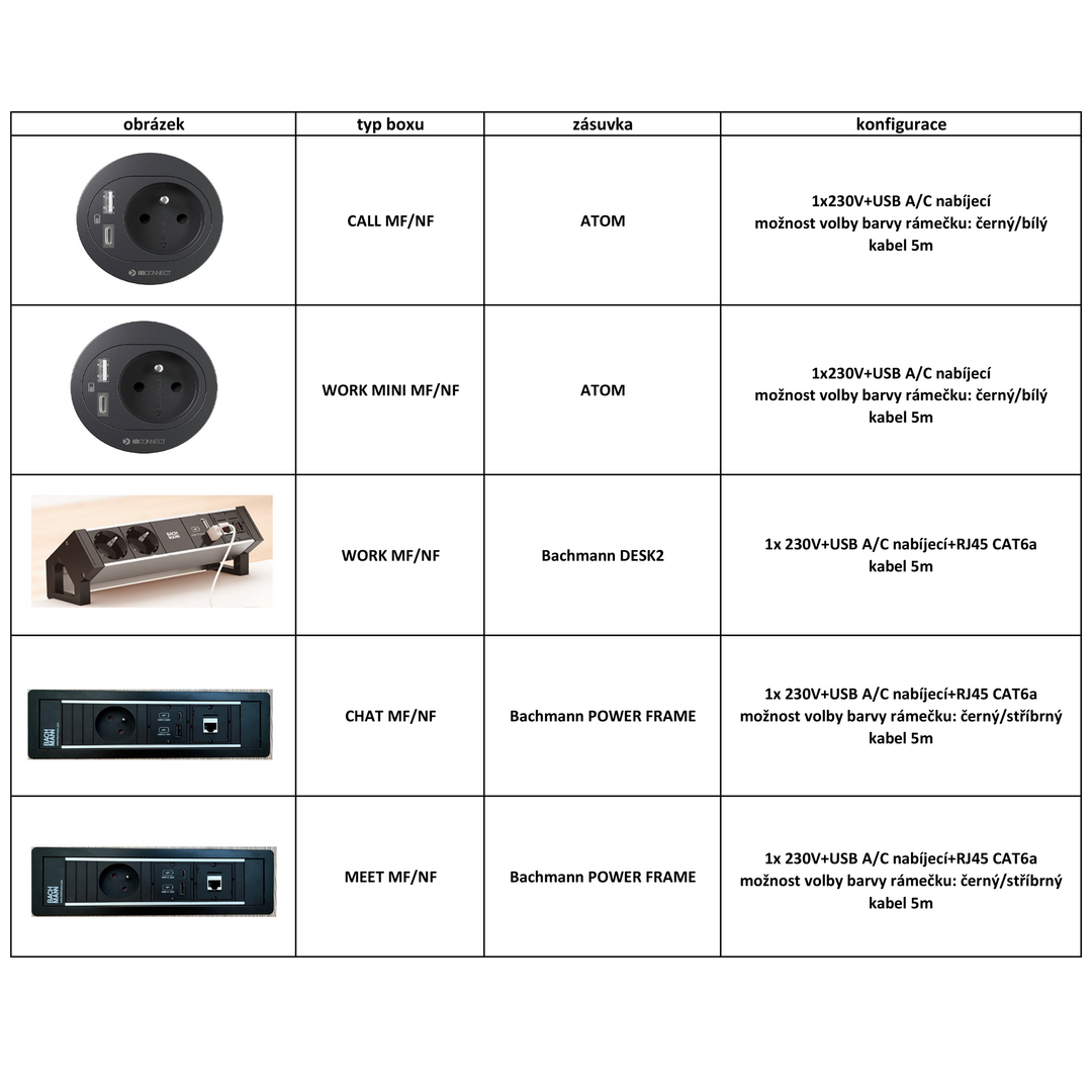• V základní výbavě je čalounění látkami BASIC, stůl, zásuvkový přípojný panel s elektrickou zásuvkou, nabíjecím USB a LAN konektorem.