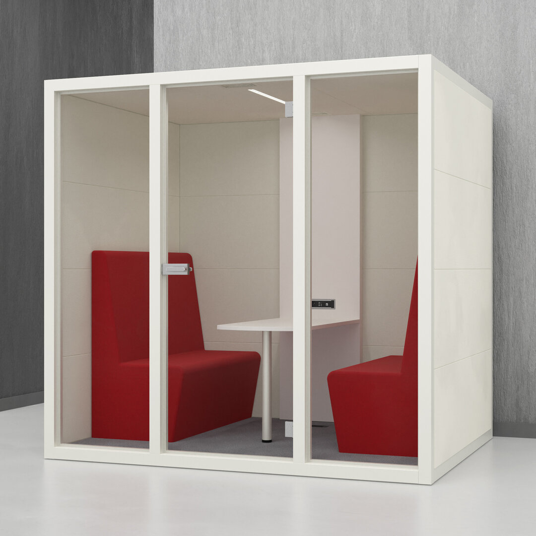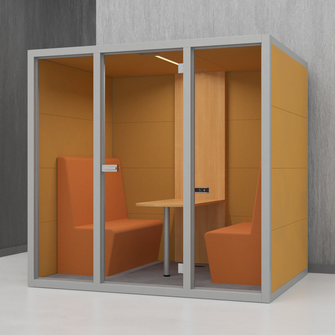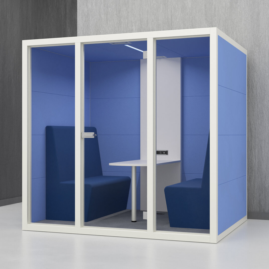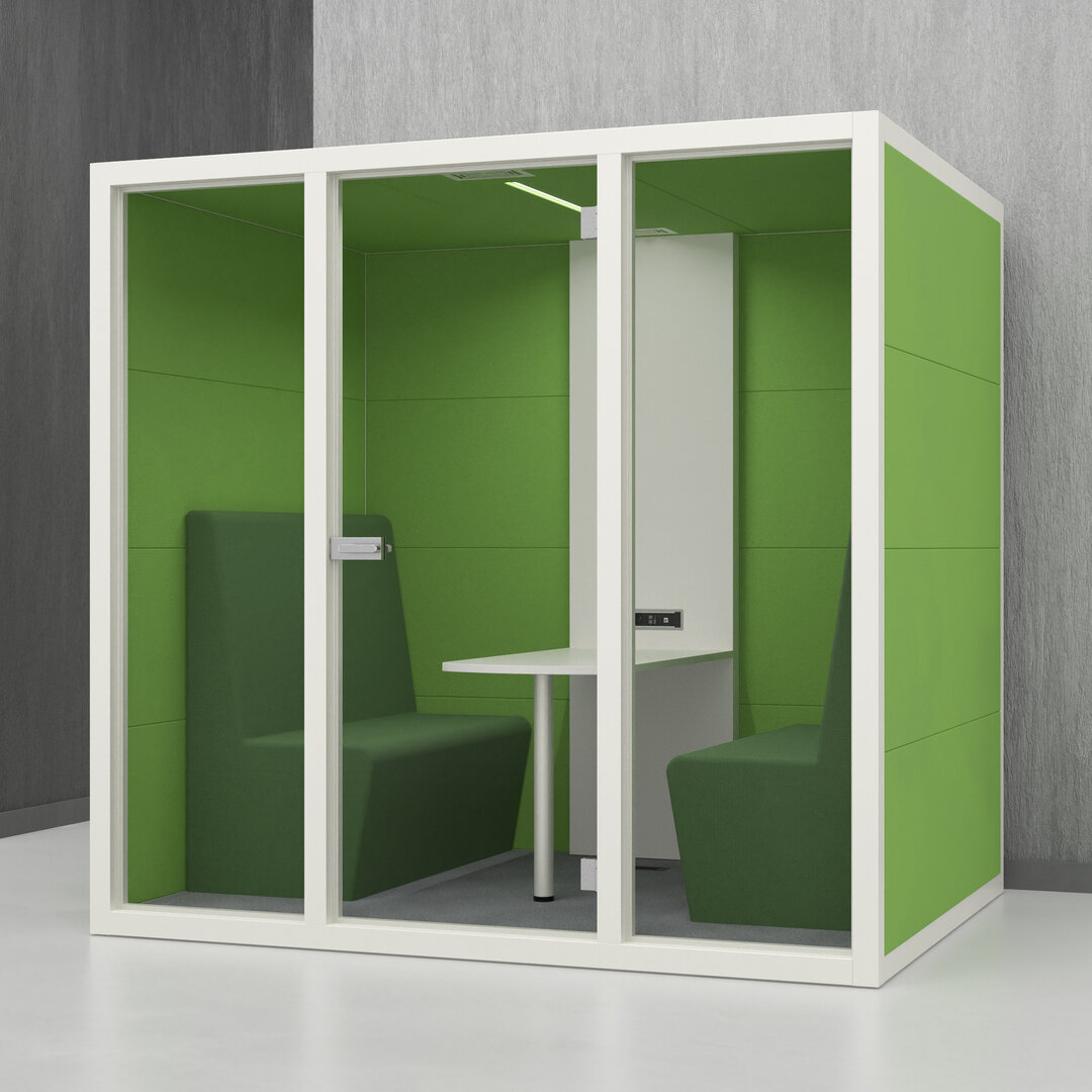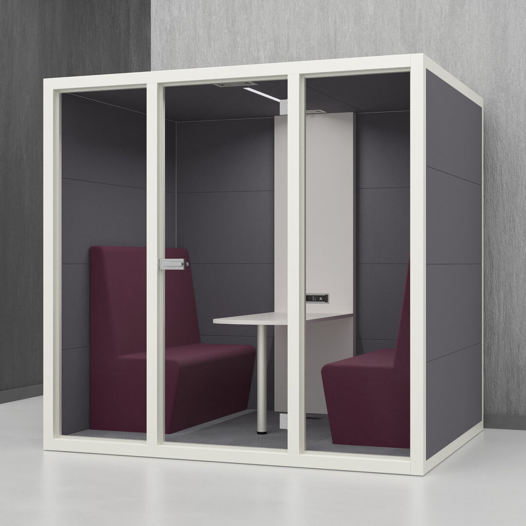 • Navrženo pro 4 osoby. Diskrétní jednací místnost, pohodlný prostor na schůzky, brainstorming nebo práci na projektech
