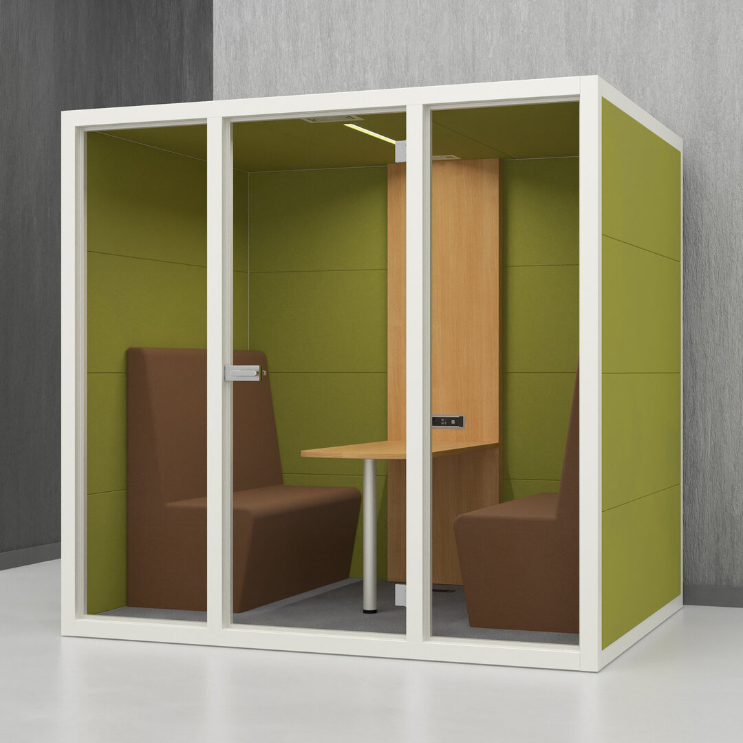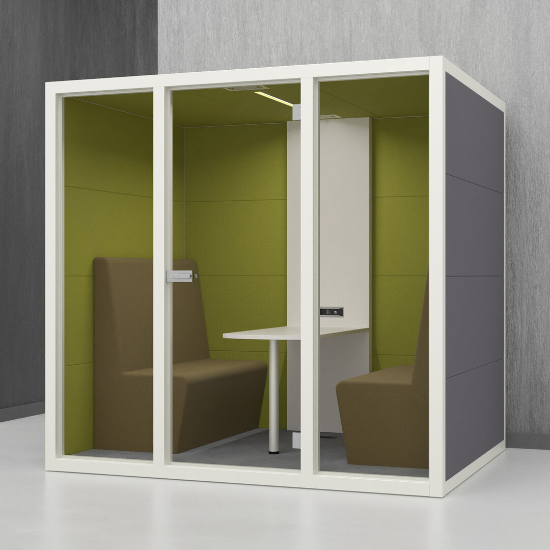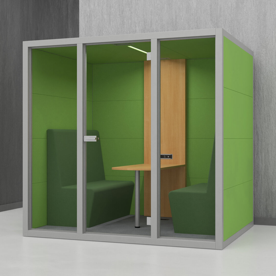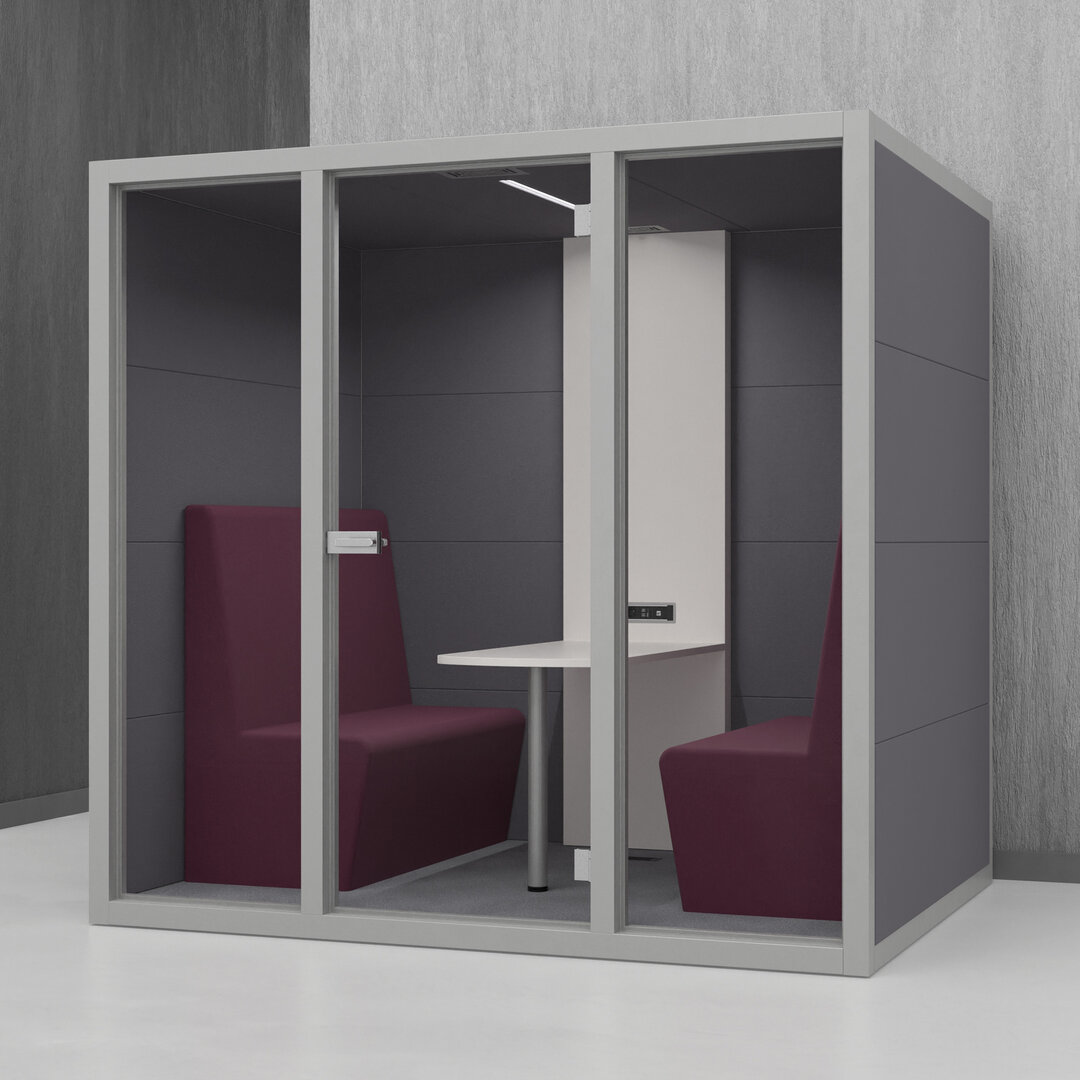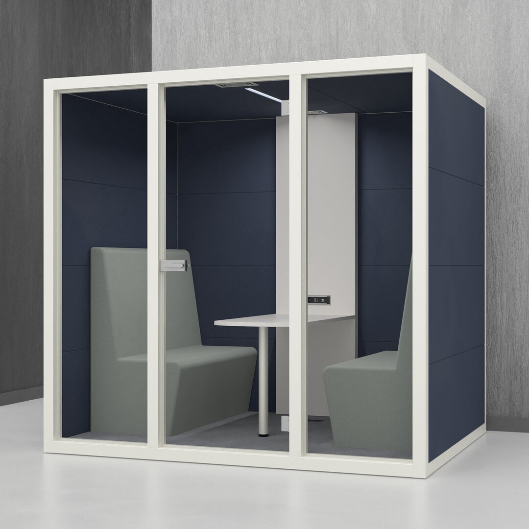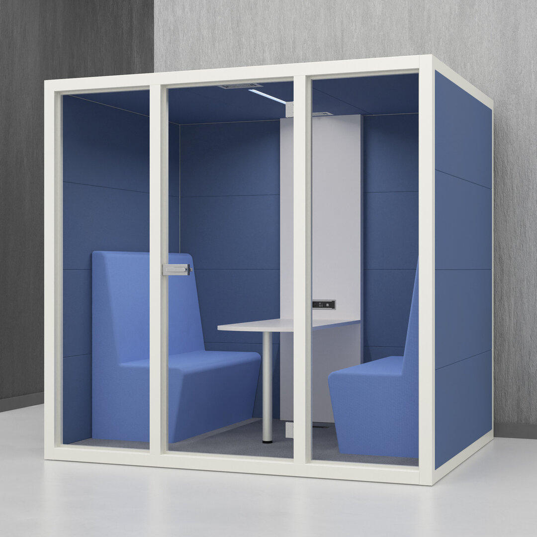 • Navrženo pro 4 osoby. Diskrétní jednací místnost, pohodlný prostor na schůzky, brainstorming nebo práci na projektech