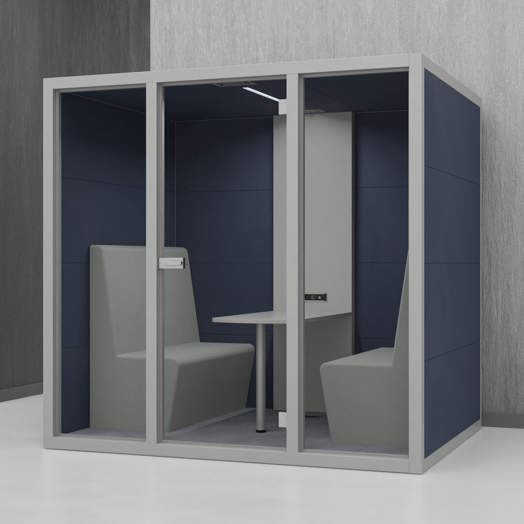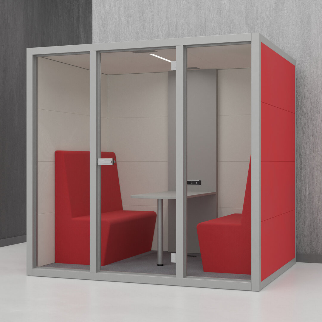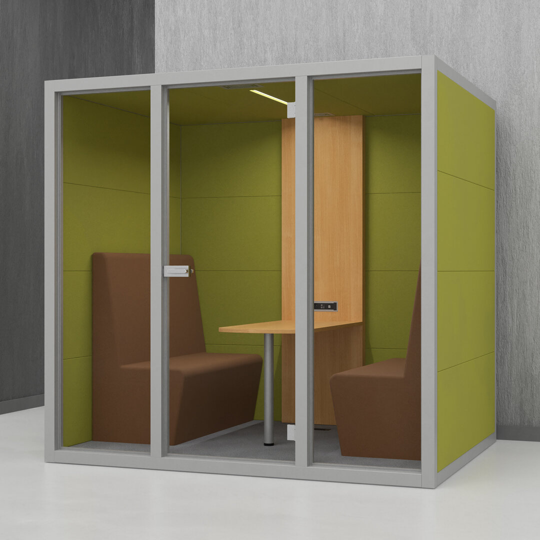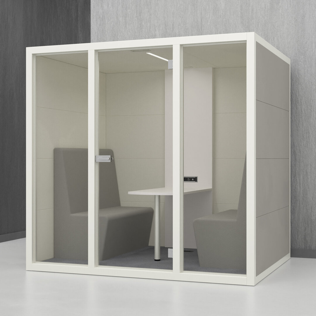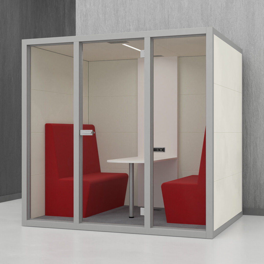 • Navrženo pro 4 osoby. Diskrétní jednací místnost, pohodlný prostor na schůzky, brainstorming nebo práci na projektech