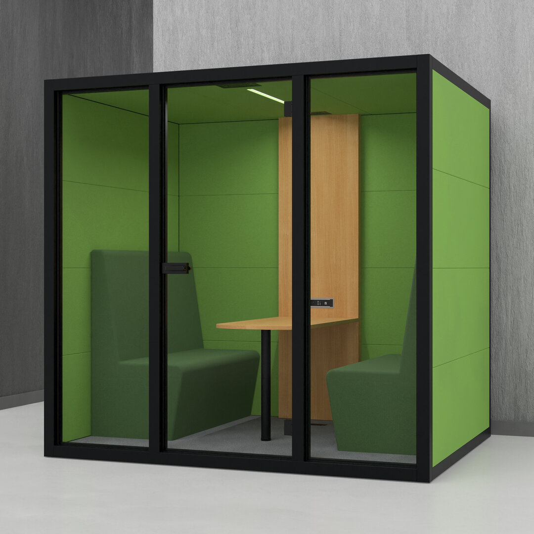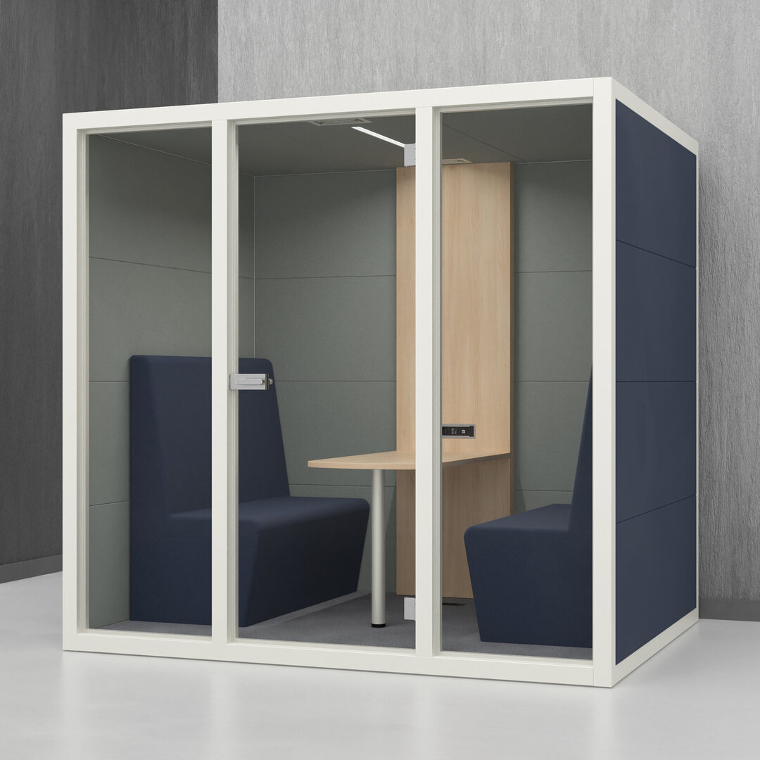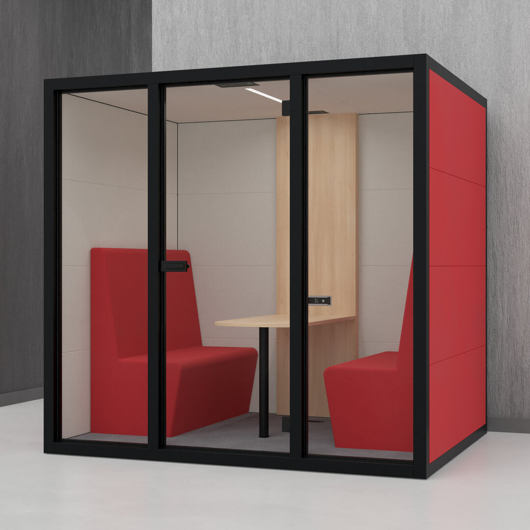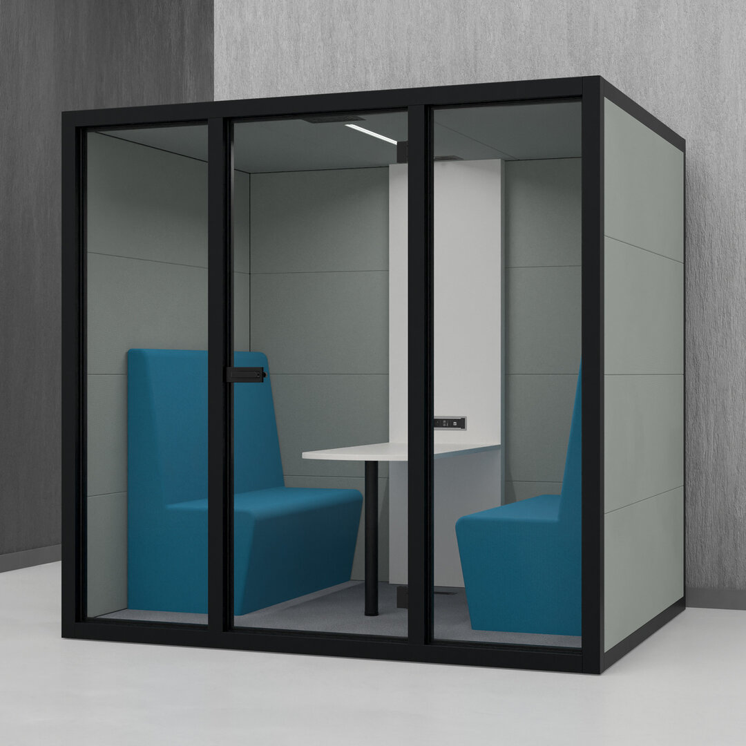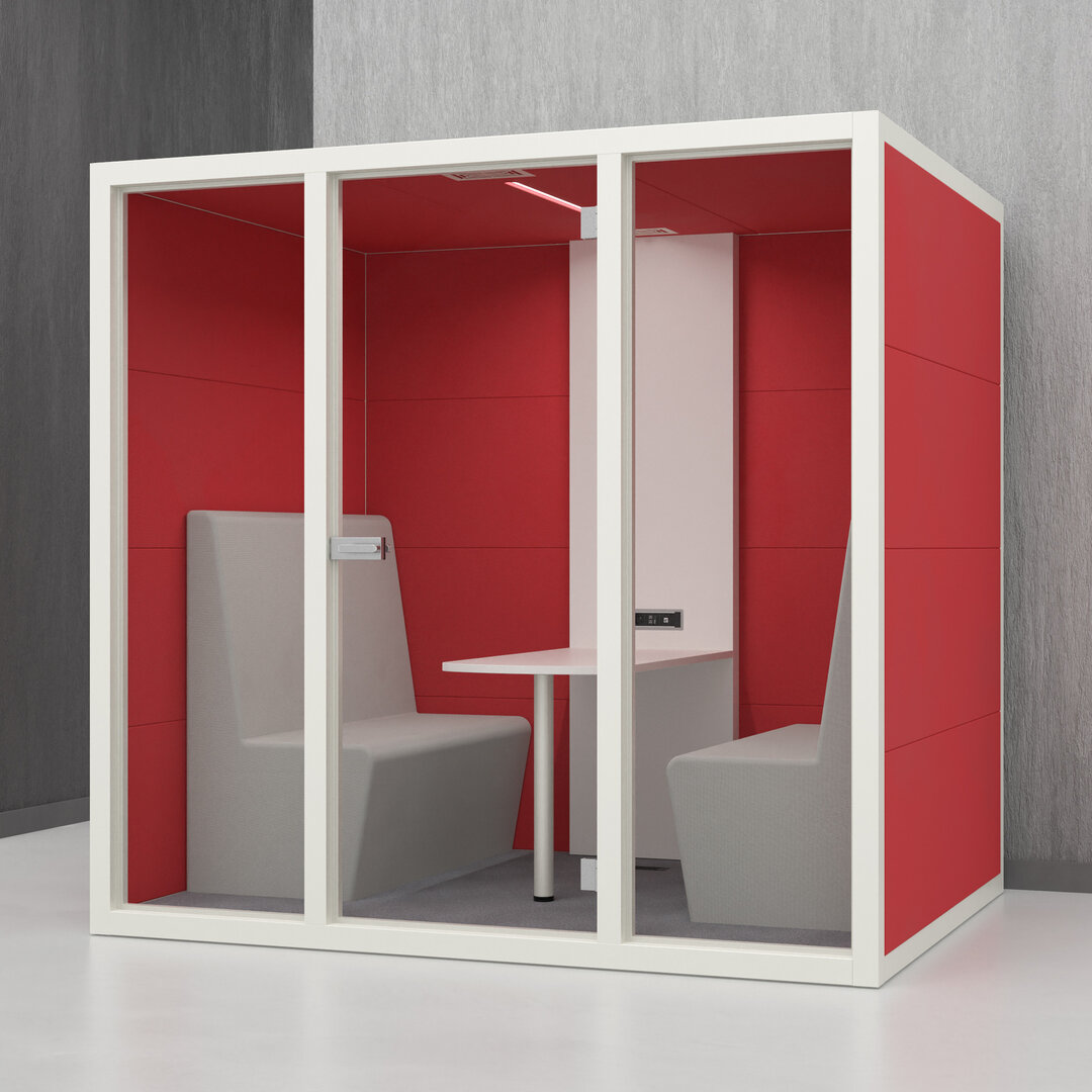 • Navrženo pro 4 osoby. Diskrétní jednací místnost, pohodlný prostor na schůzky, brainstorming nebo práci na projektech