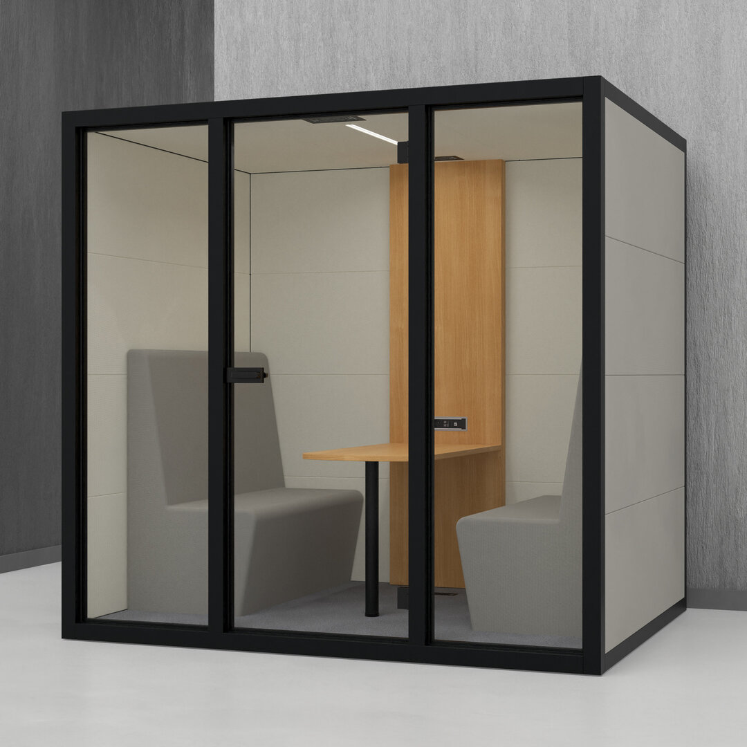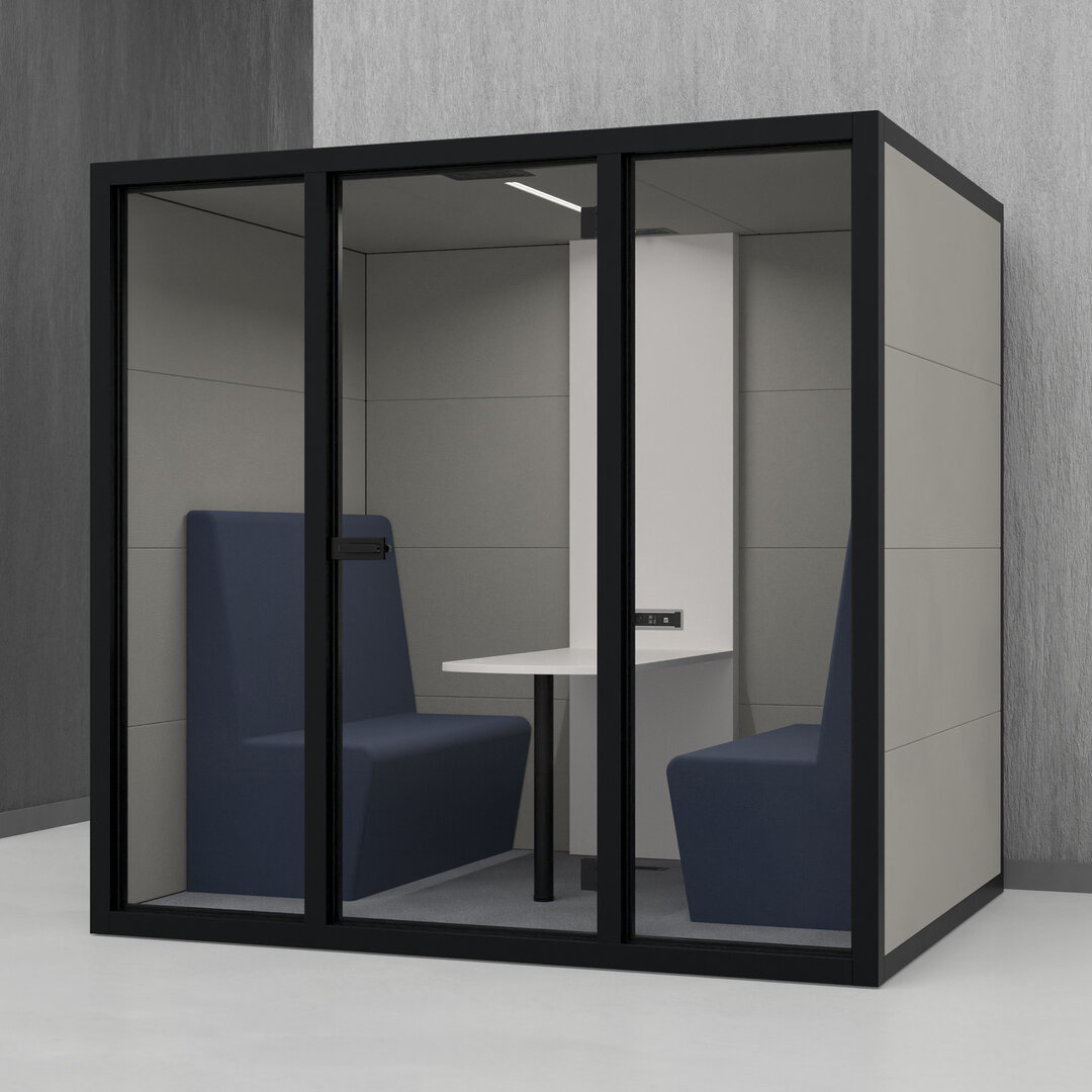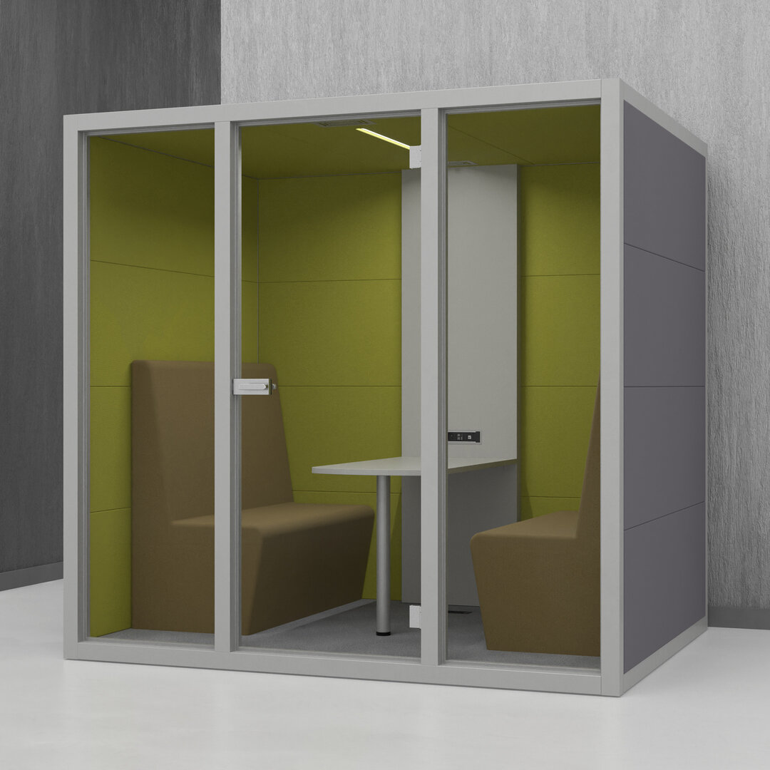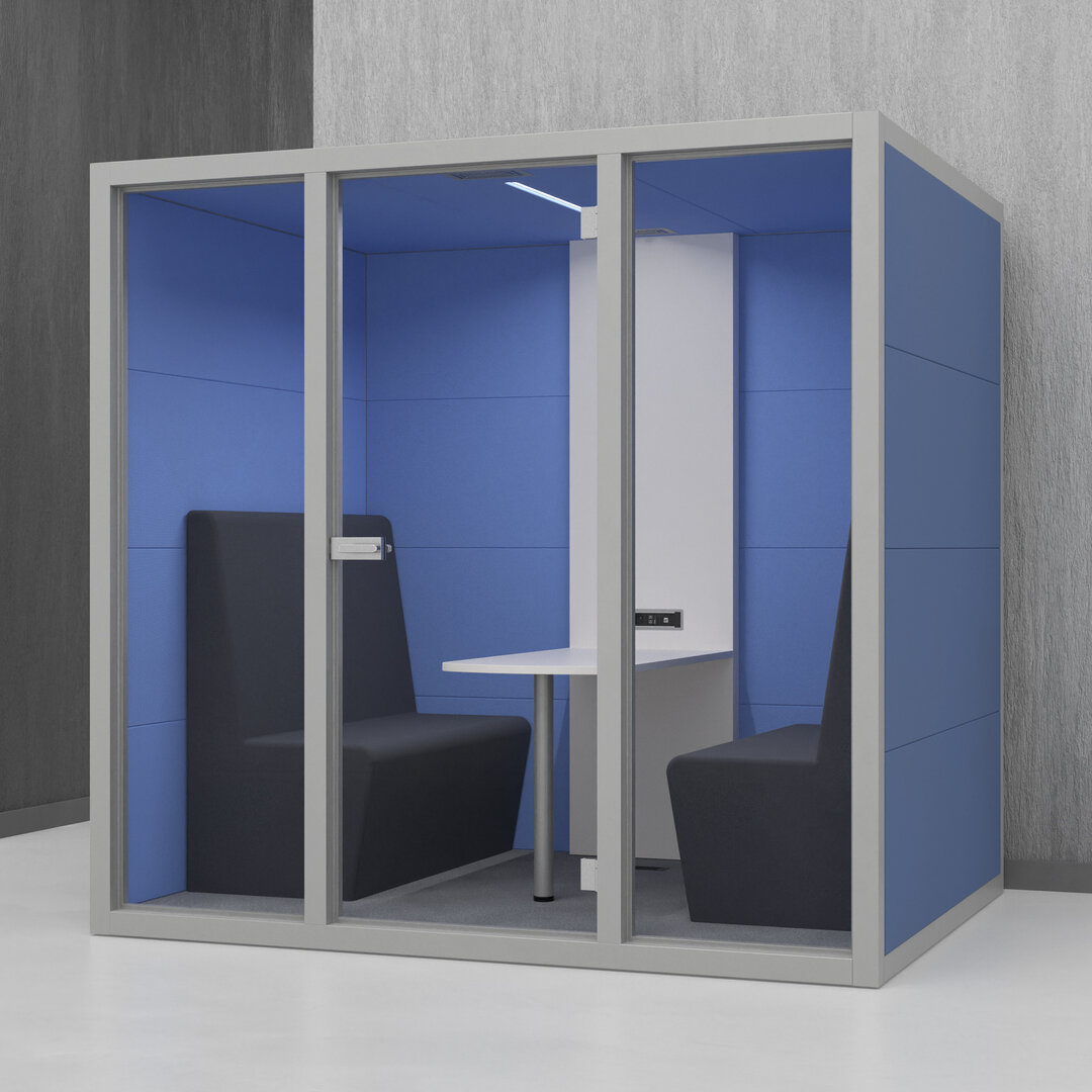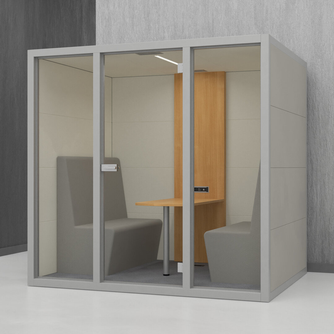 • Navrženo pro 4 osoby. Diskrétní jednací místnost, pohodlný prostor na schůzky, brainstorming nebo práci na projektech