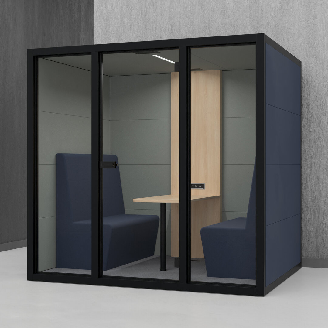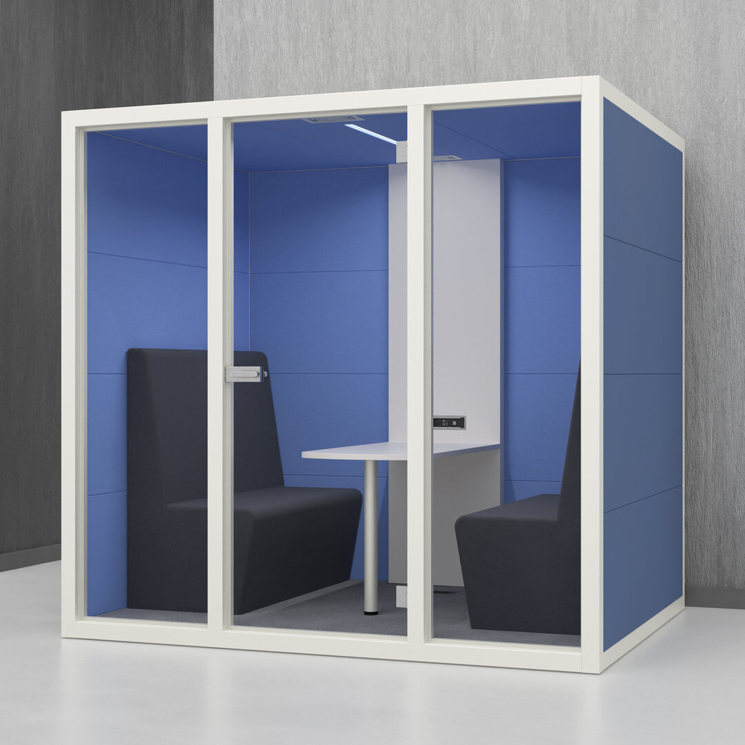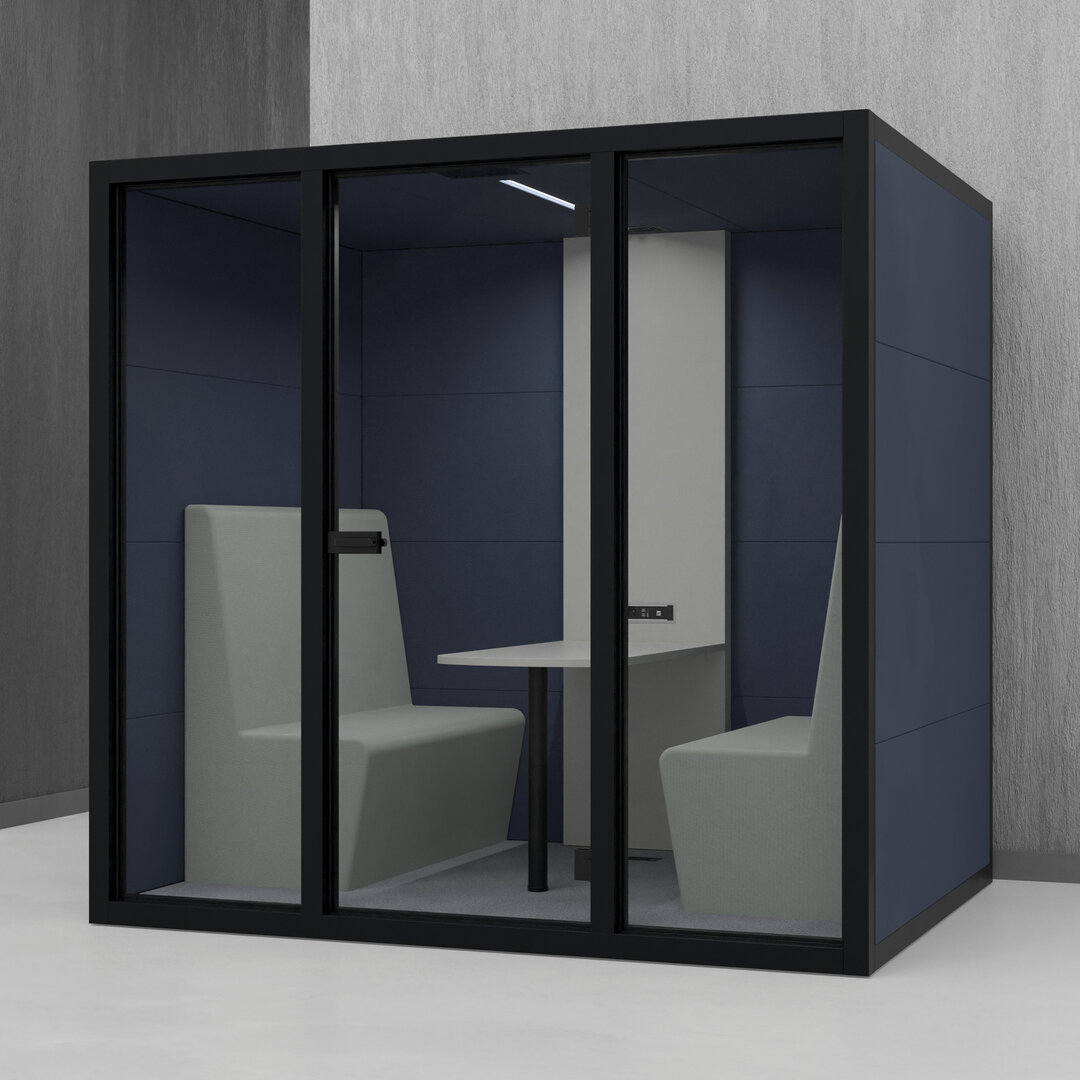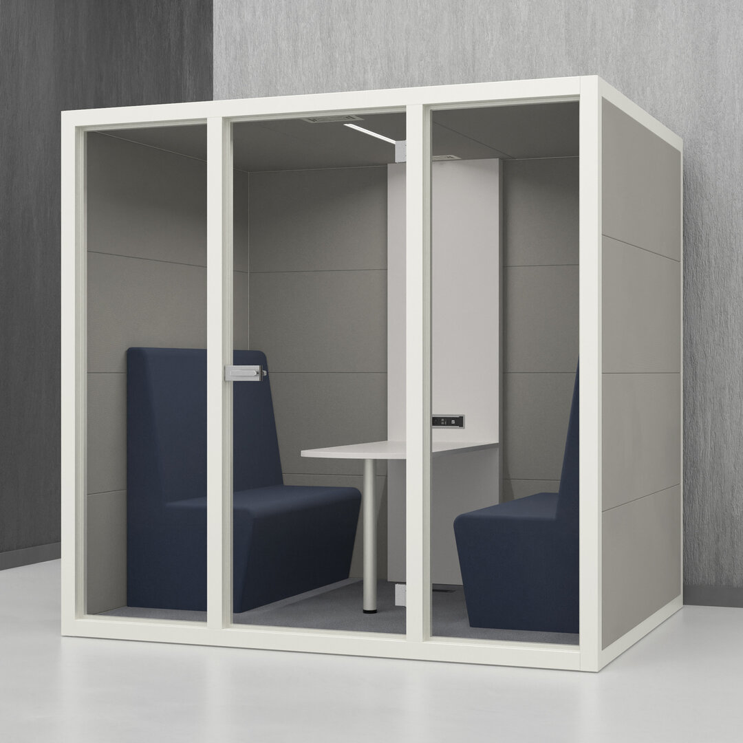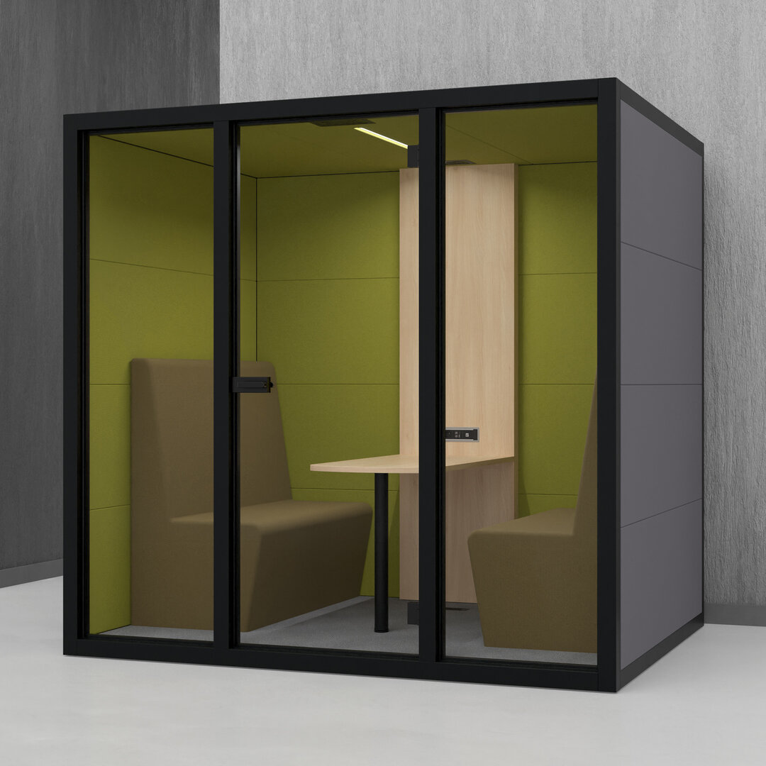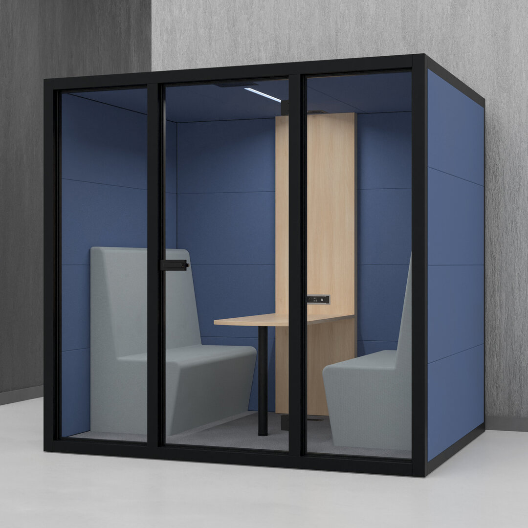 • Navrženo pro 4 osoby. Diskrétní jednací místnost, pohodlný prostor na schůzky, brainstorming nebo práci na projektech