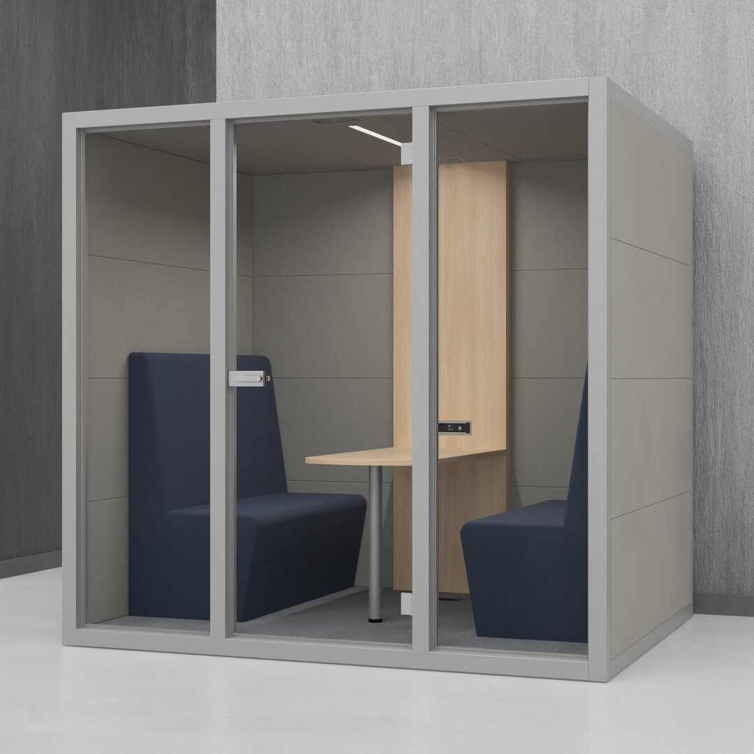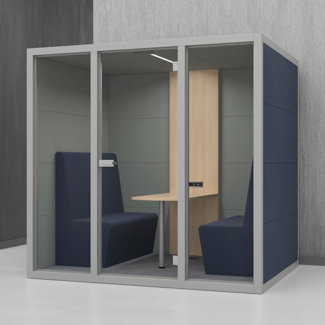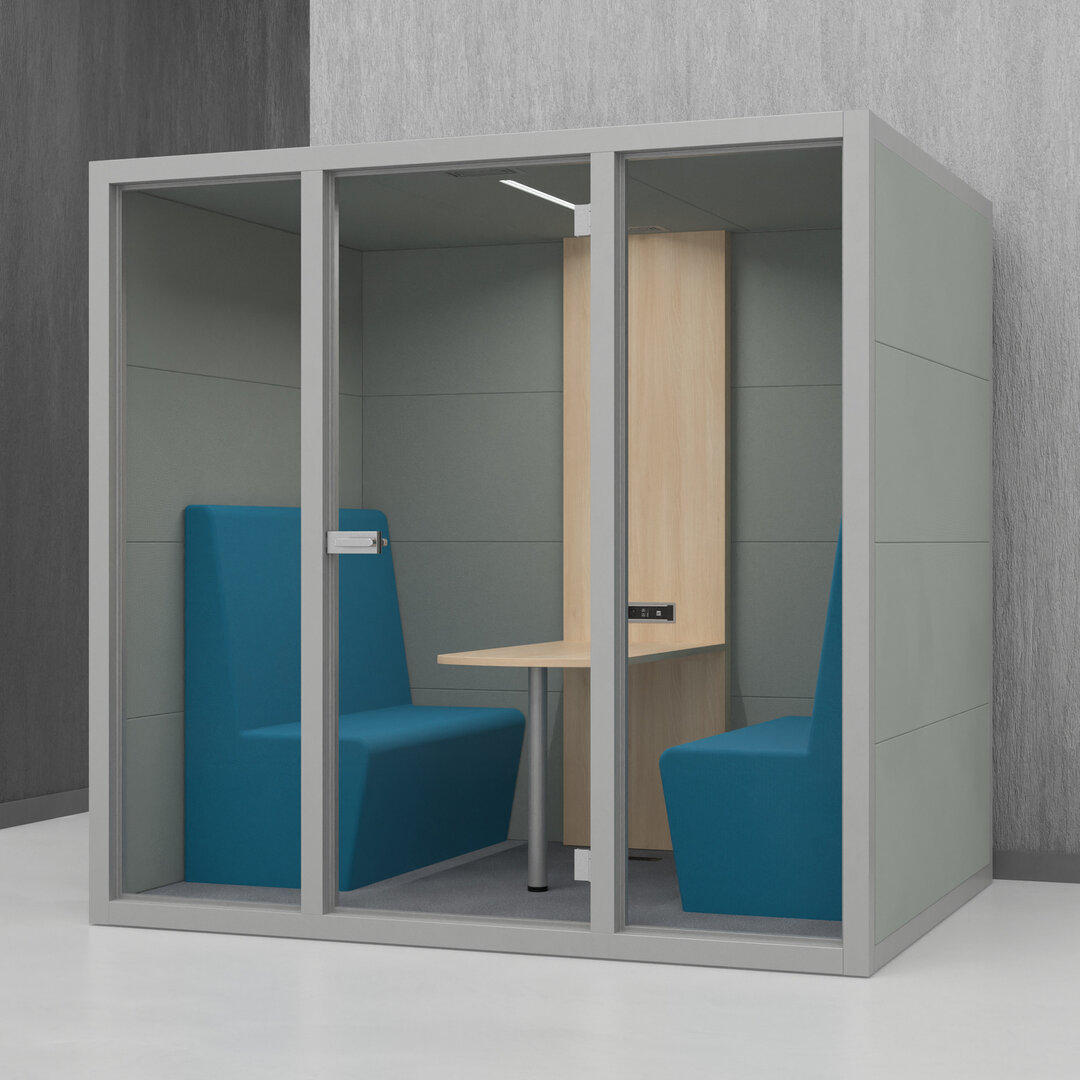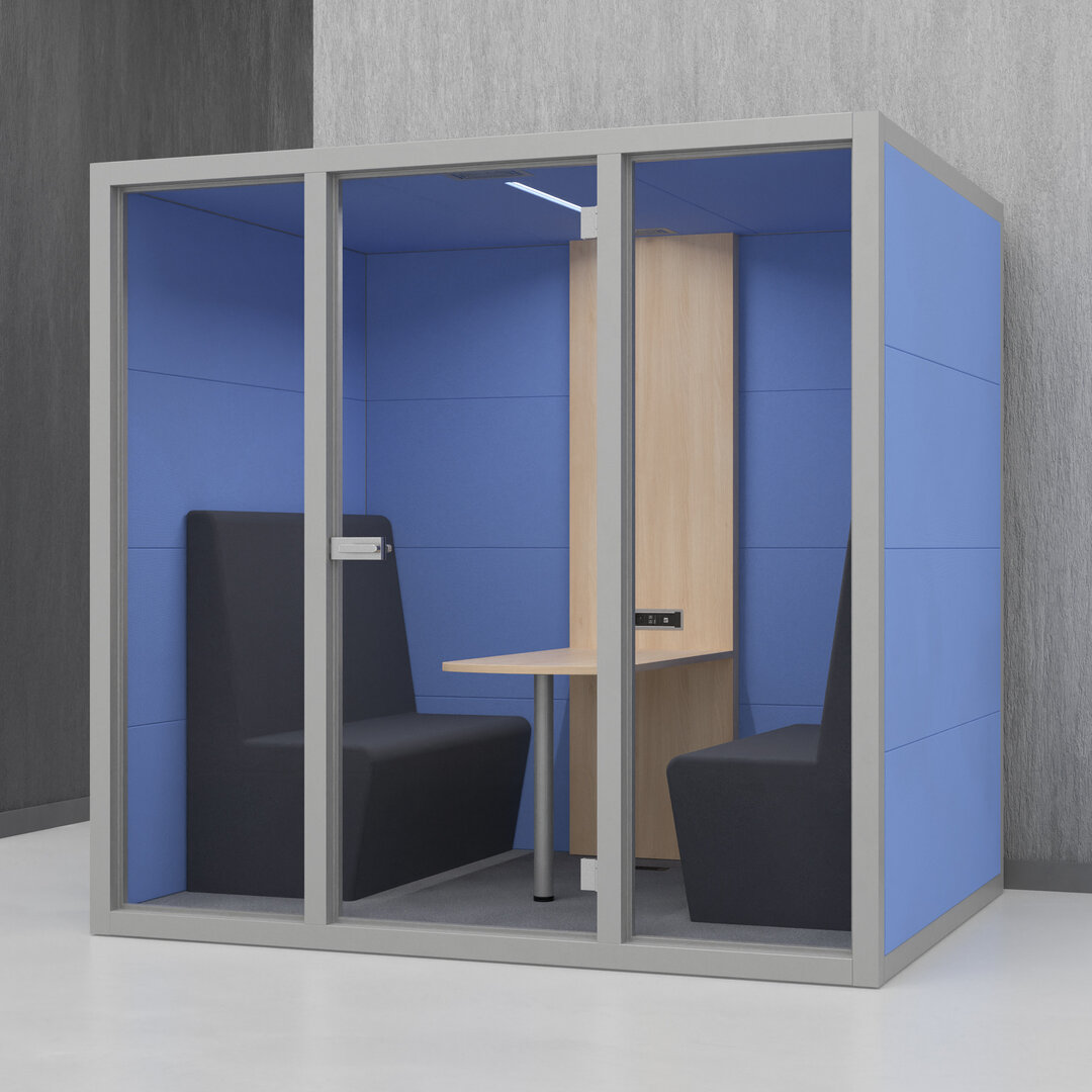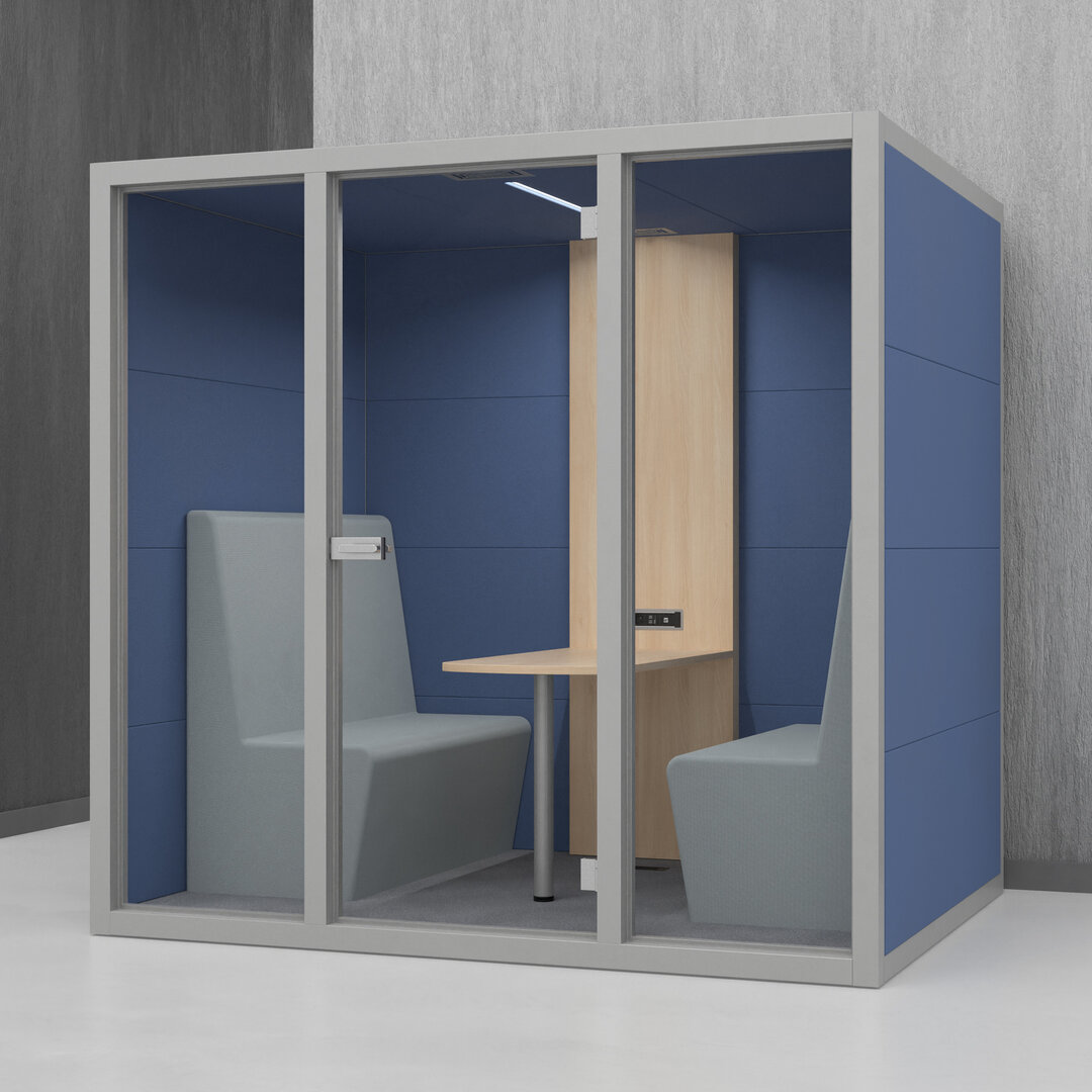 • Navrženo pro 4 osoby. Diskrétní jednací místnost, pohodlný prostor na schůzky, brainstorming nebo práci na projektech